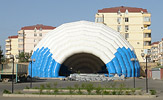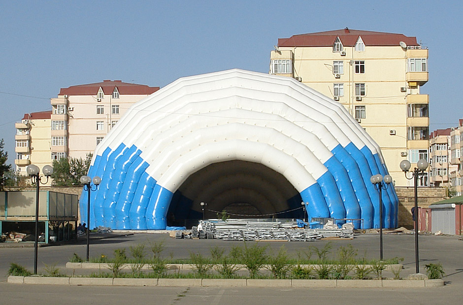 Dolphinarium. Inflatable building with covering area of 9,149 sq ft