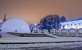This pneumo-frame inflatable building was used as part of the project of STB (TV channel) Zymova Kraina (Winter Country).