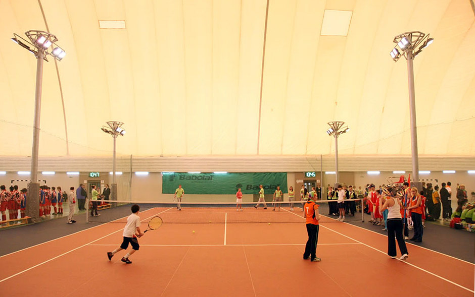 Application: a sports complex including an ice rink, rollerdrome, car-race track, climbing wall, play area.