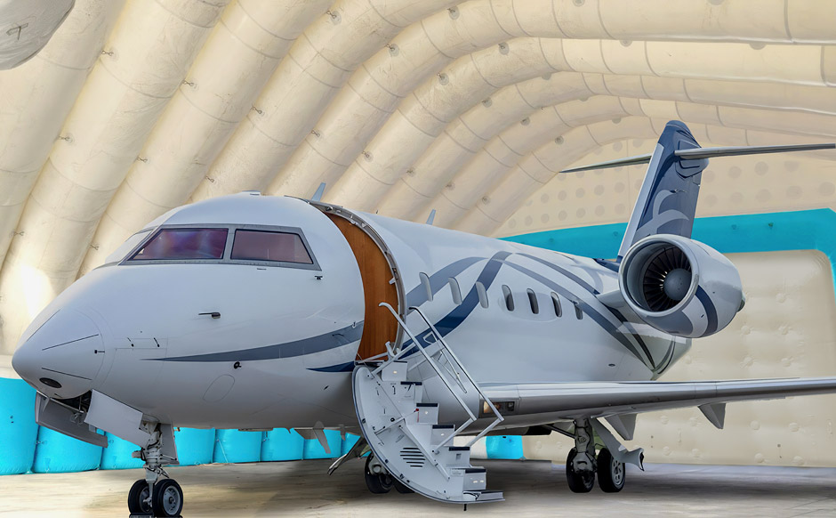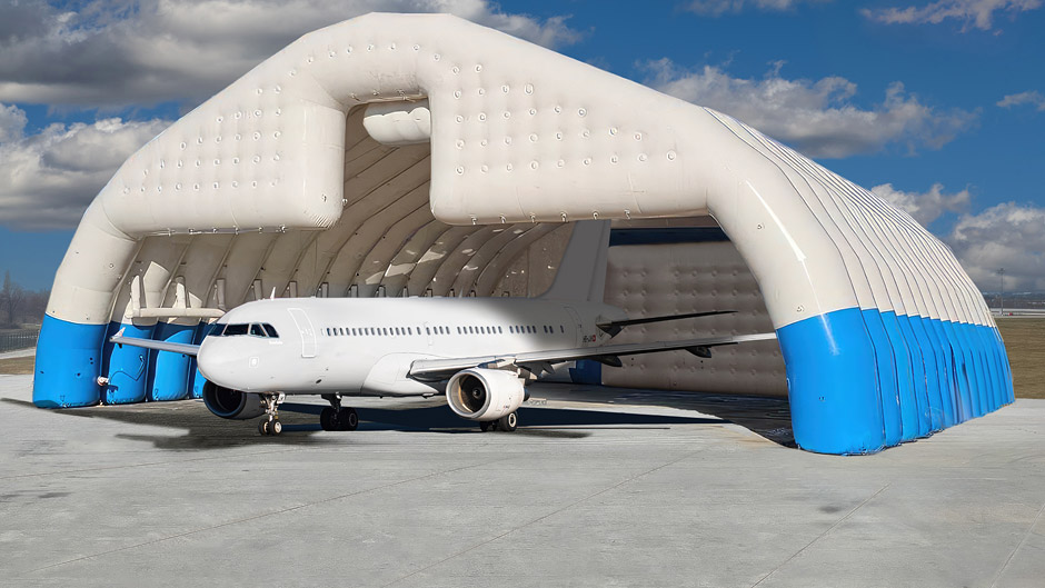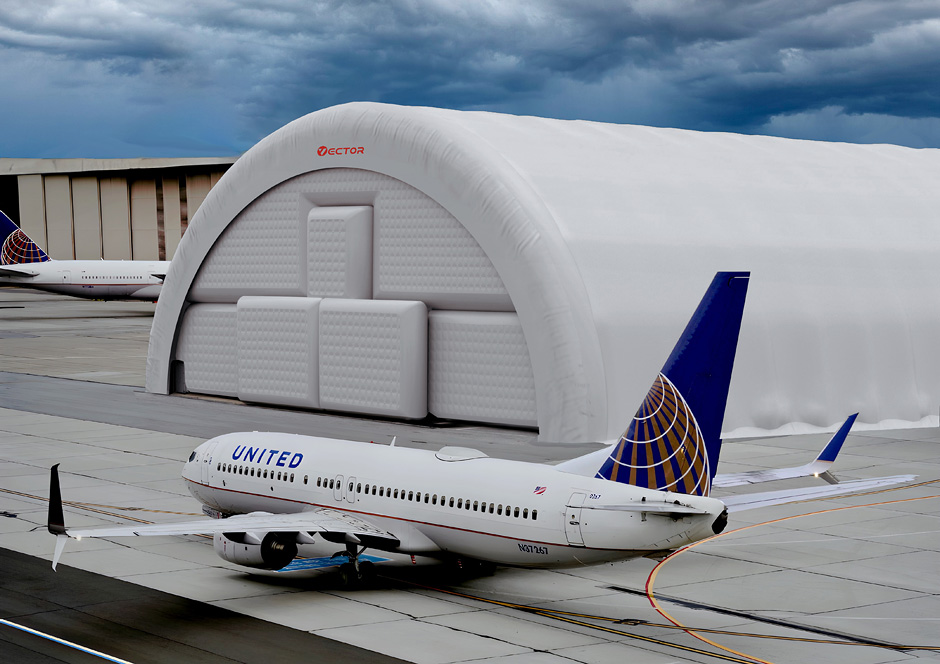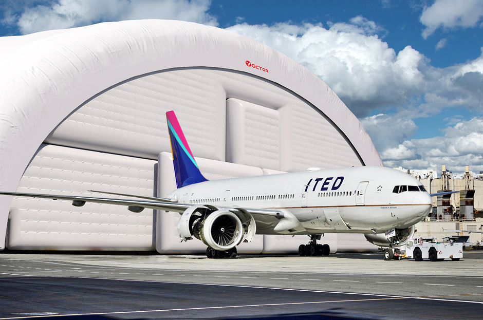 Vector inflatable aircraft hangars can be used as temporary or long-term structures for aircraft storage, inspection, repair, and weather protection.
