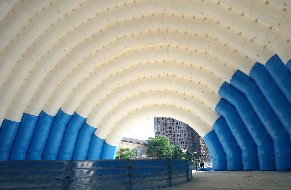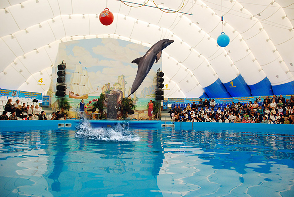 Dolphinarium. Inflatable building with covering area of 9,149 sq ft